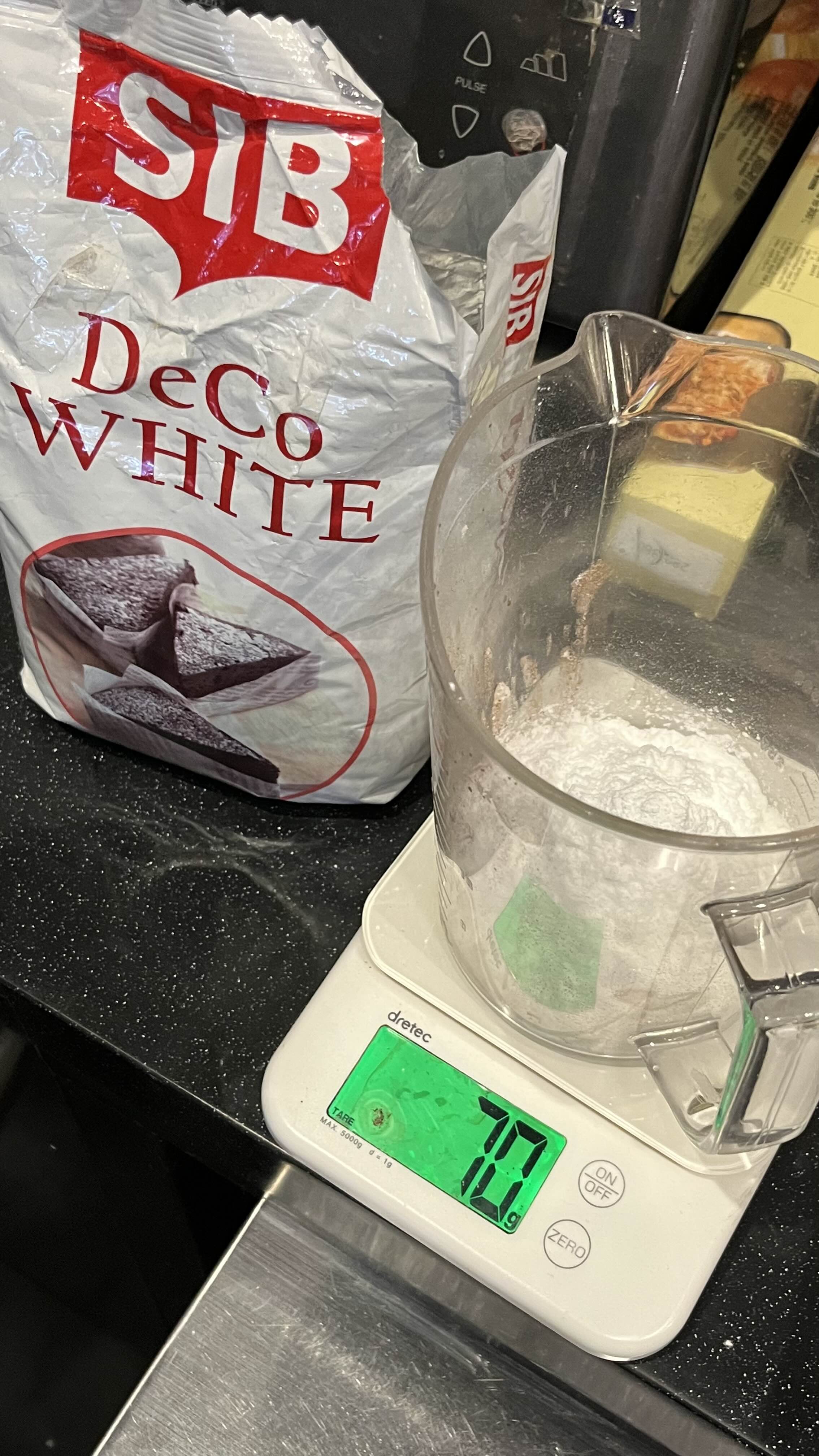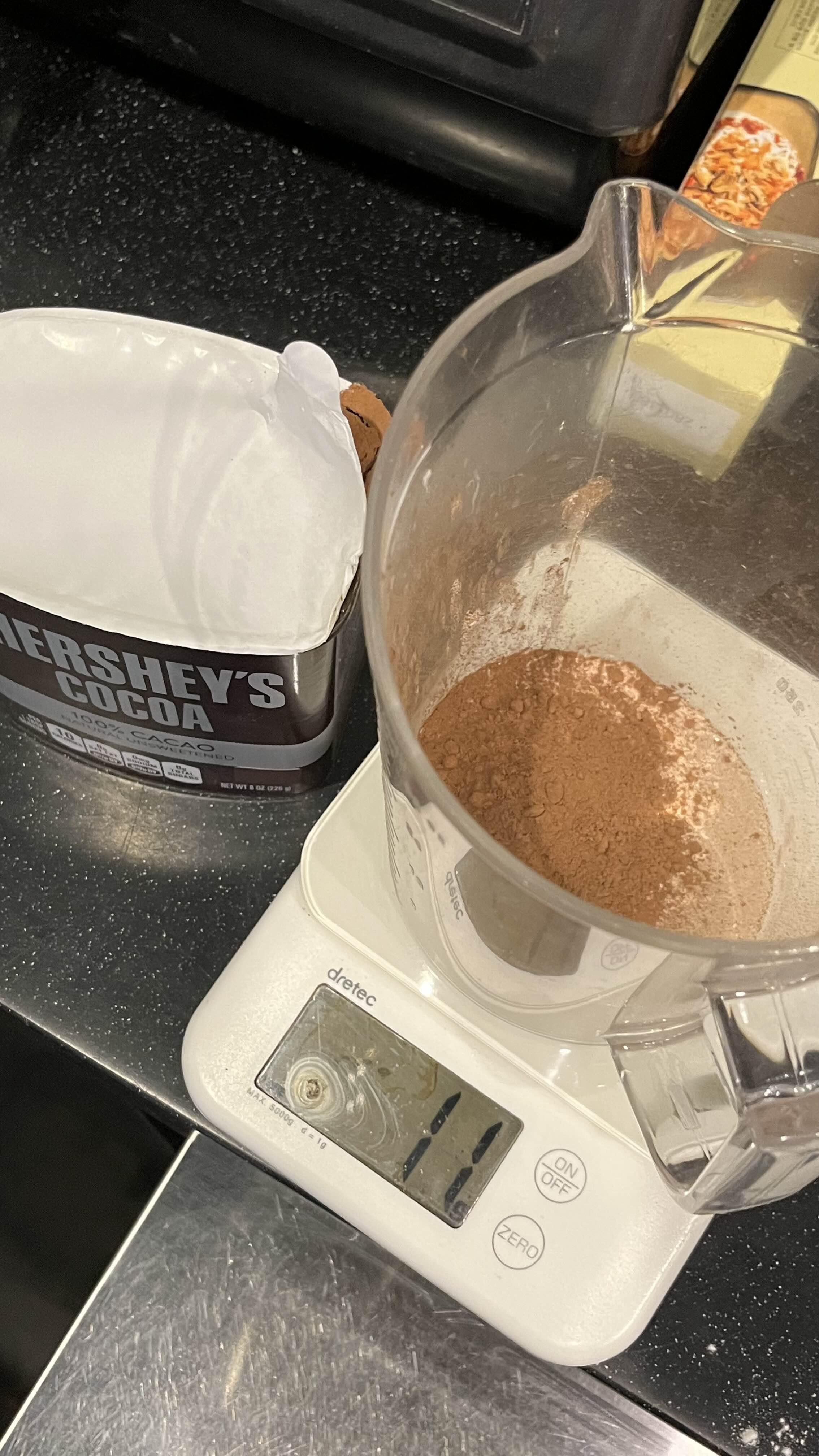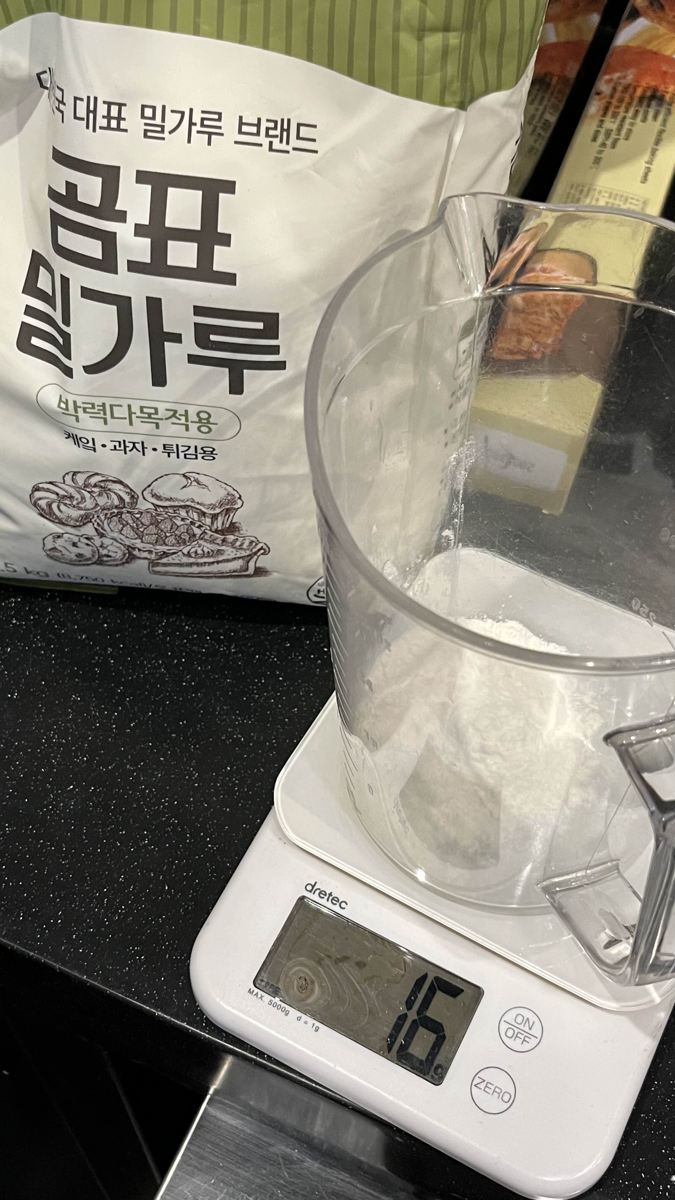 1. 박력분 15g + 슈가파우더 70g + 코코아파우더 10g