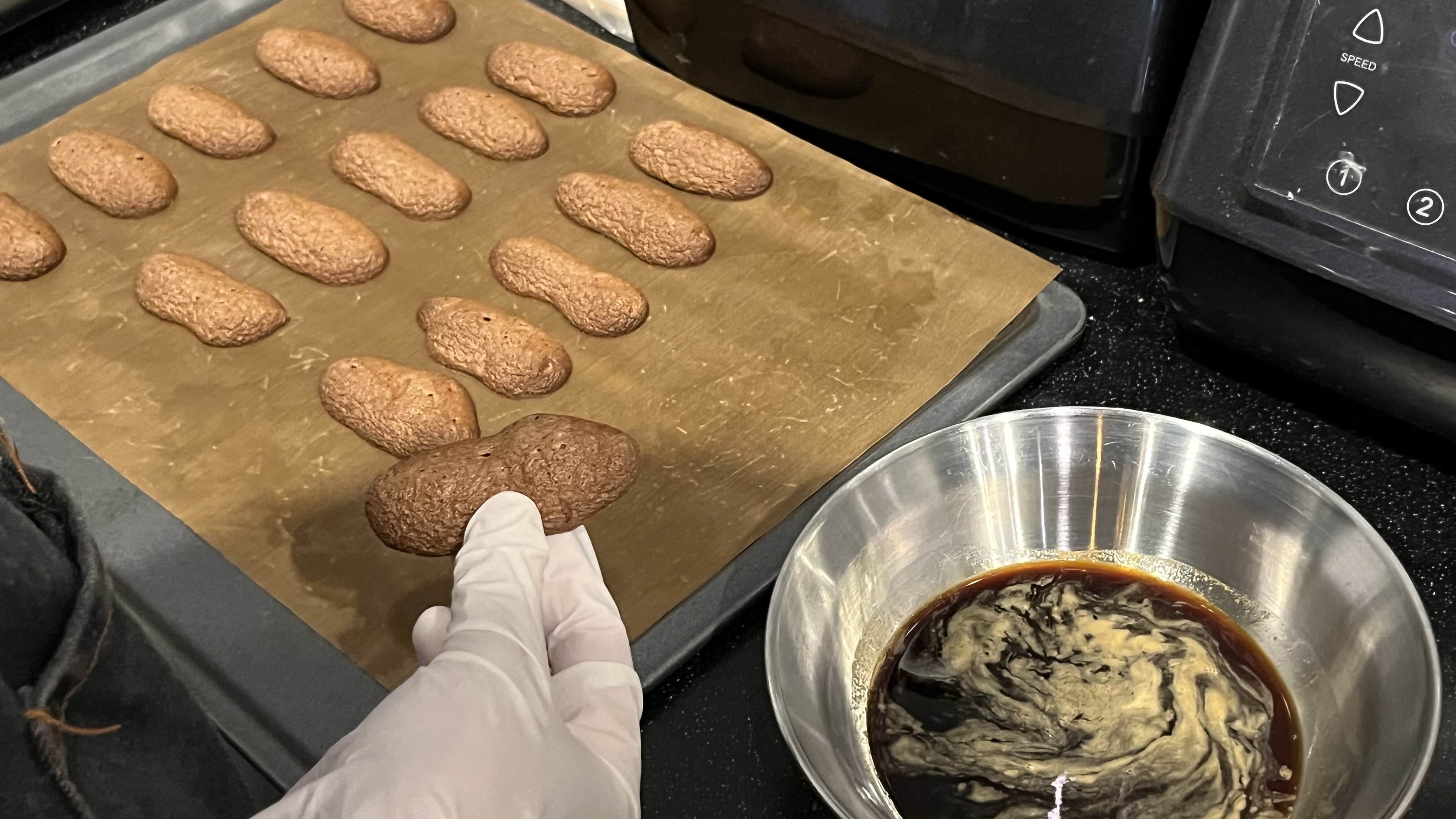 10. 구워진 쿠키에 에스프레소 묻혀서 보틀에 넣기