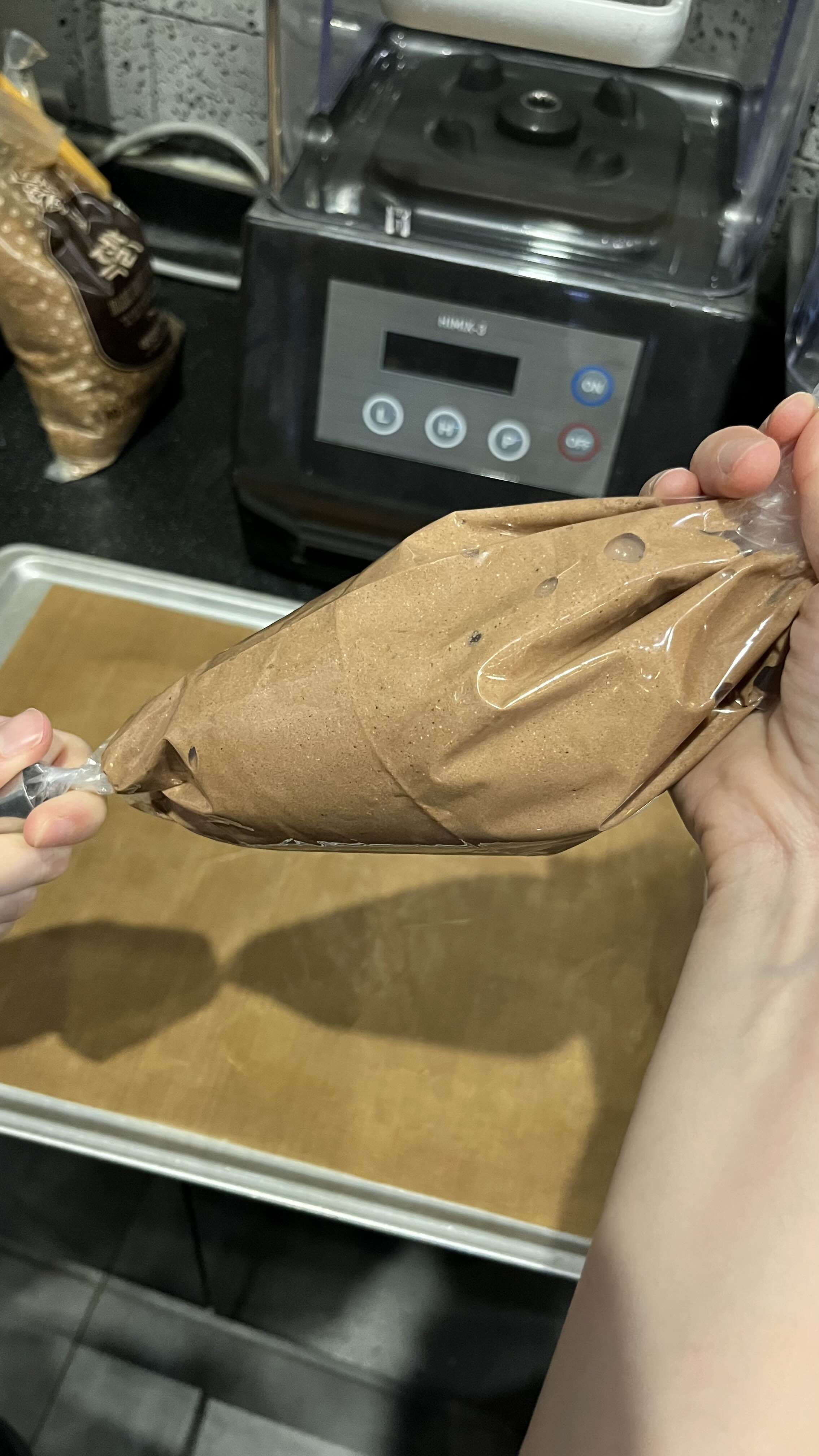4. 짤주머니에 넣어서 보틀에 넣을사이즈로 짜서 오븐에 굽기