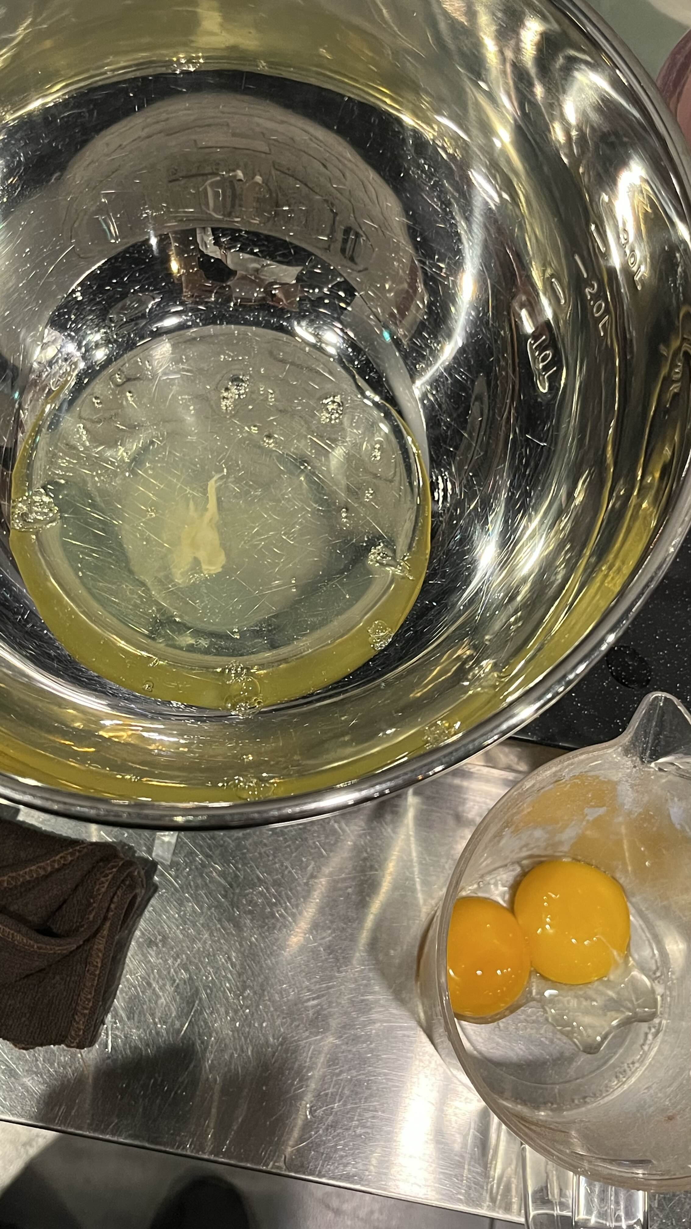 7.분리한 노른자2개에 설탕 25g 넣고 블랜딩